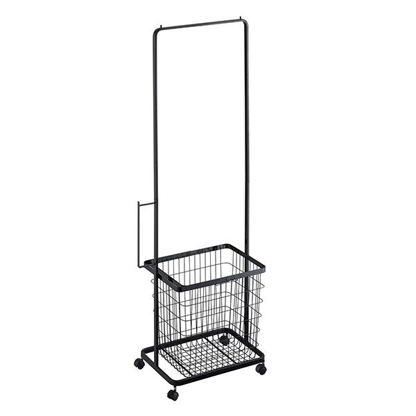 ハンガーラック 洗濯物干し ランドリーラック ランドリーハンガーカート セット タワー tower バスケット付 山崎実業( ラック 洗濯 物干し 室内干し 室内物干し スリム バスケット キャスター キャスター付き 洗濯用品 洗濯グッズ ) 【 ブラック 】