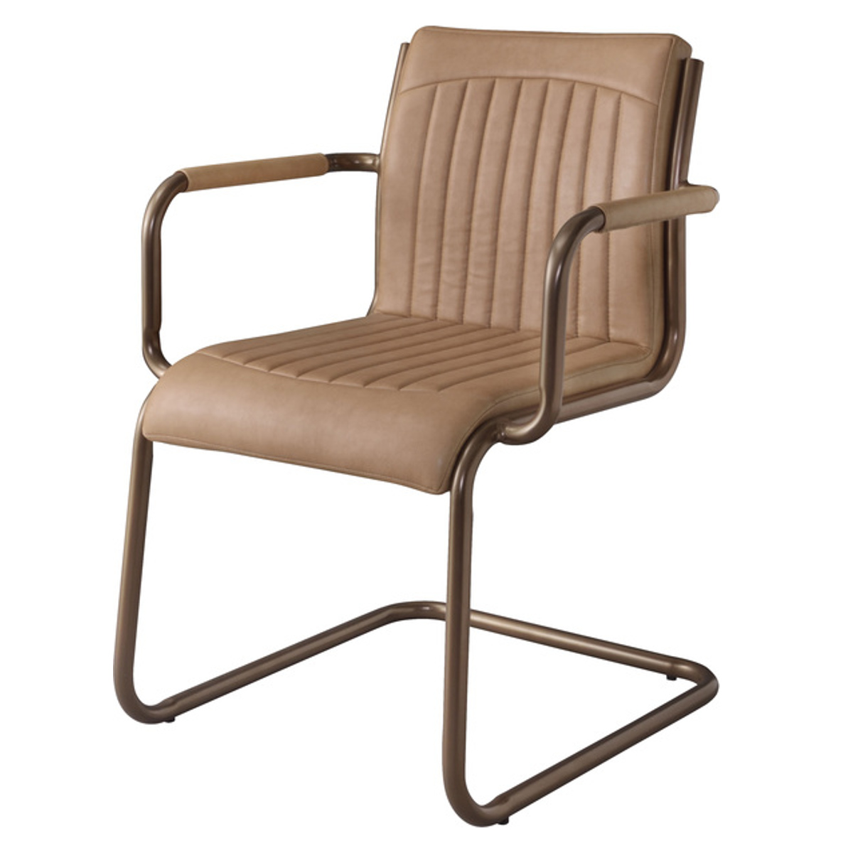 ダイニングチェア 座面高46cm スチール ソフトレザー ( レザー調 肘付き カンティレバー コの字型 リビングチェア 合皮 スチールフレーム ビンテージ調 レトロ調 ) 【ベージュ】
