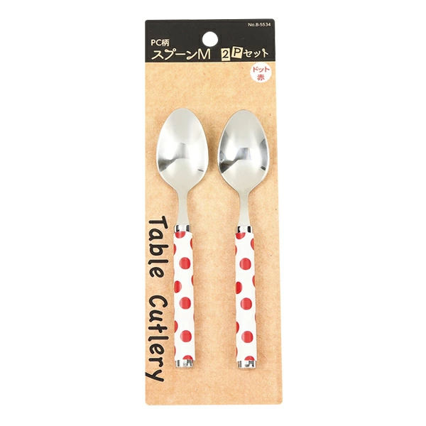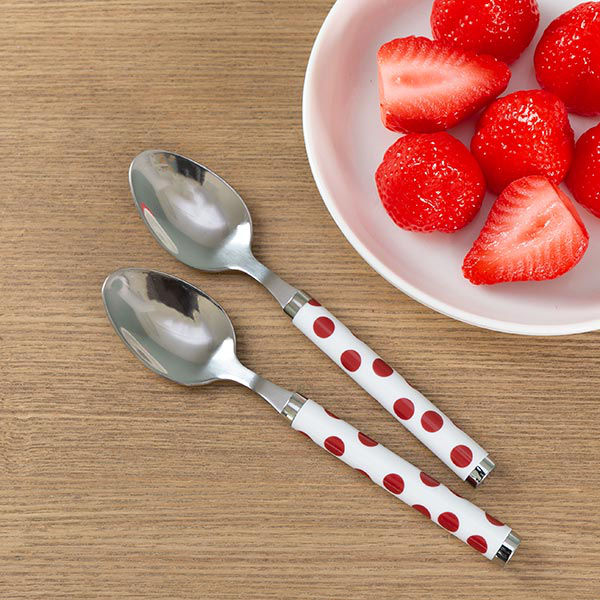 スプーン 小 セット 2本入り ステンレス ドット 赤 ( 洋食器 カトラリー ティースプーン デザートスプーン 匙 デザート アイス コーヒー 紅茶 おしゃれ )
