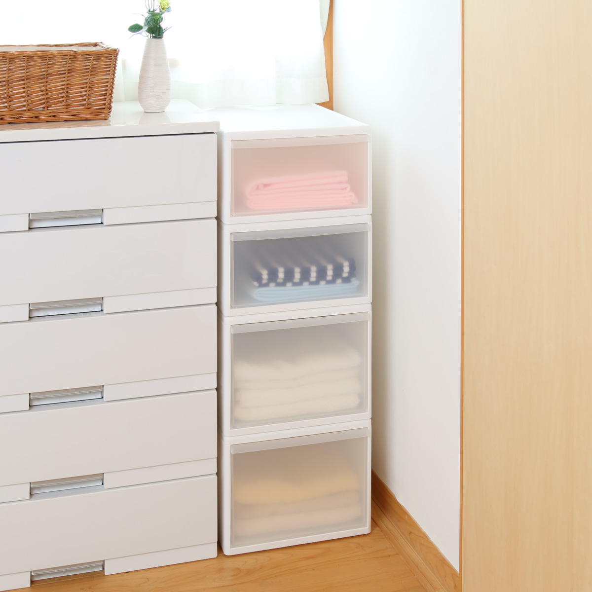 引き出しはほどよく透け感があり、開けなくても中身が確認できます。