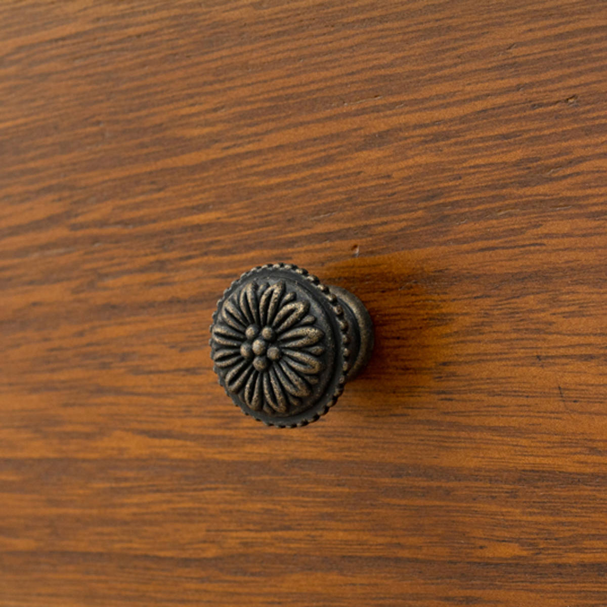 取っ手はアンティーク加工が施されており、お洒落な花柄がアクセントになっています。