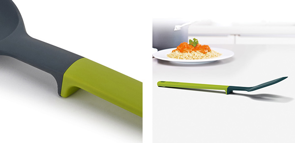 先端が浮き上がるようにデザインされたエレベート構造のキッチンツールです。ツールを衛生的に保てるだけでなく、調理中に置いても台を汚さないのでお掃除の手間も省けます。