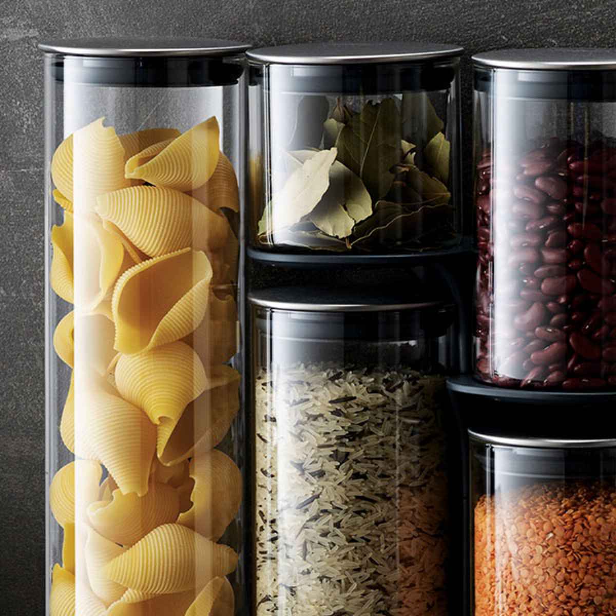 ハイクオリティーガラスを使用したコンパクトでスペースを取らないフードストレージです。上の段の容器を動かさずに下の段の容器を取り出すことができます。