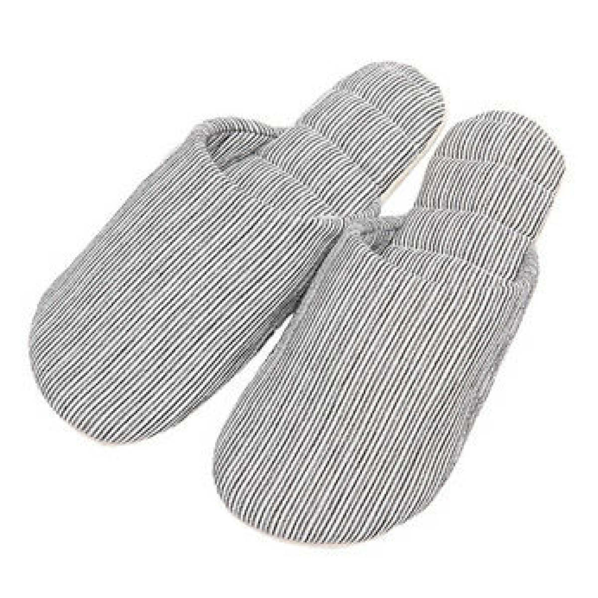 スリッパ jyabjyab爽やかコットンリネンL 洗える ( ルームシューズ ルームスリッパ 室内 メンズ レディース シンプル ナチュラル ボーダー 来客用 室内用 洗濯 軽い 軽量 会社 オフィス 前詰め ) 【ブラック】