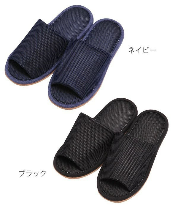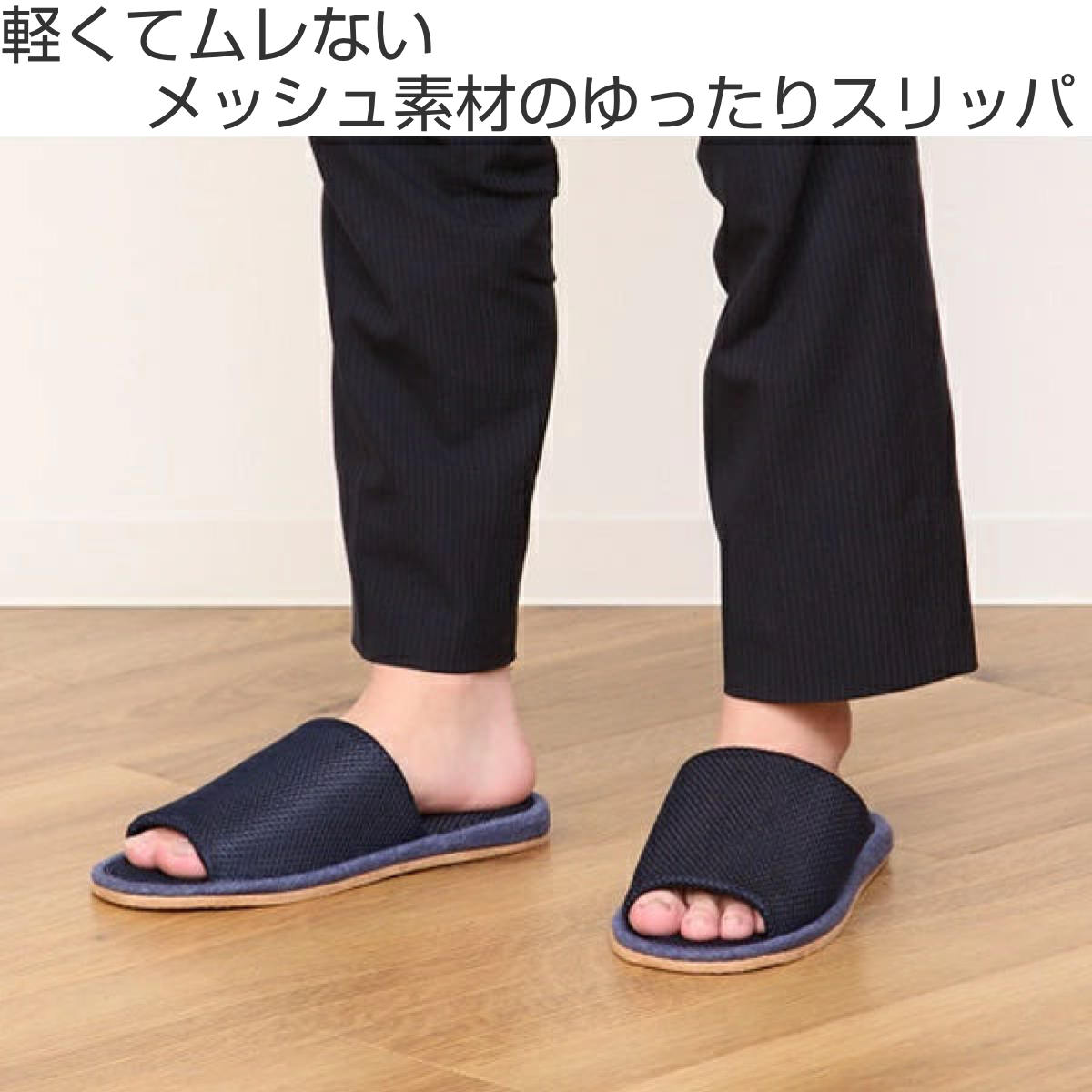 スリッパ カラーメッシュ外縫いL ( ルームシューズ ルームスリッパ 室内 メンズ 夏 夏用 通気性 メッシュ クッション シンプル 無地 室内用 前開き ) 【ネイビー】