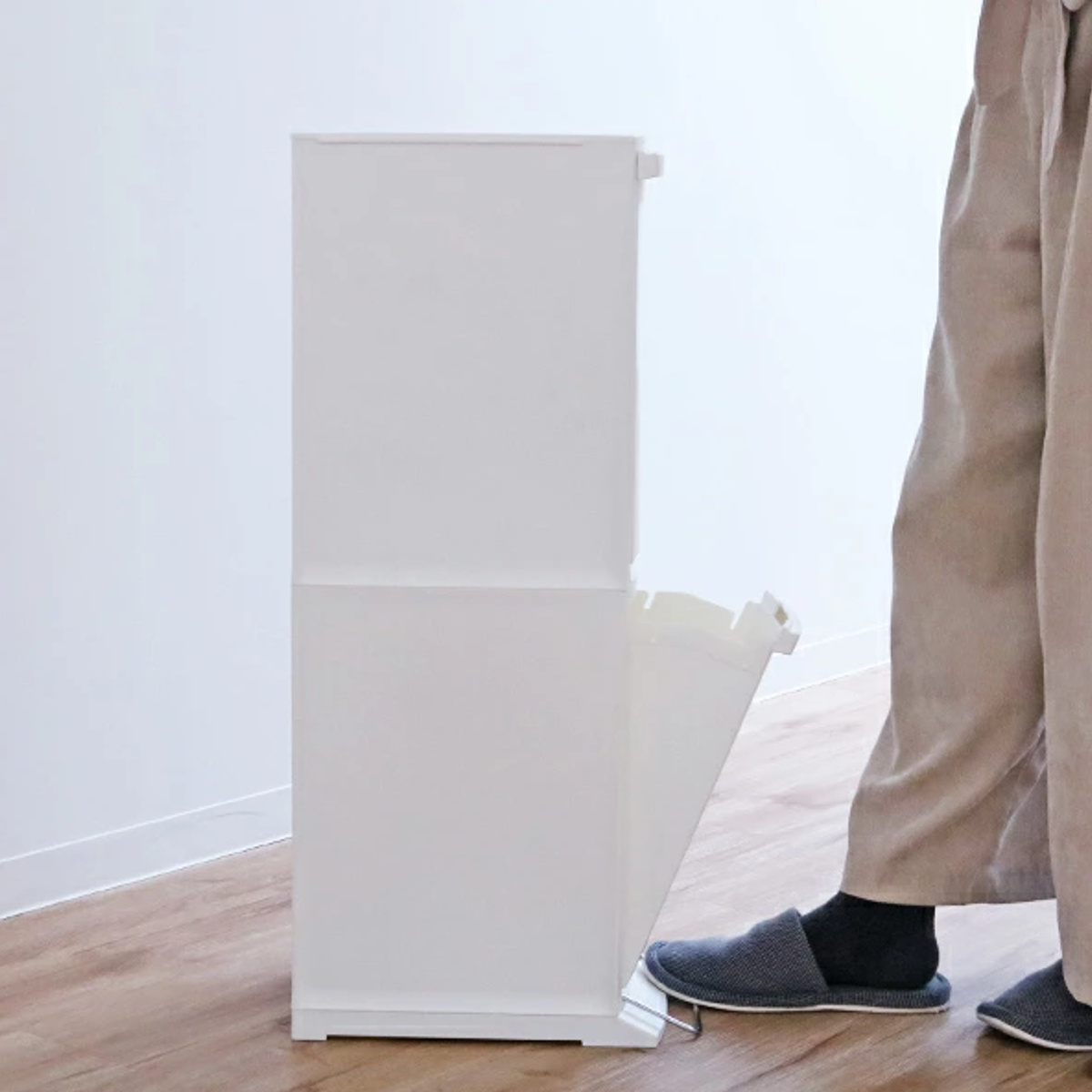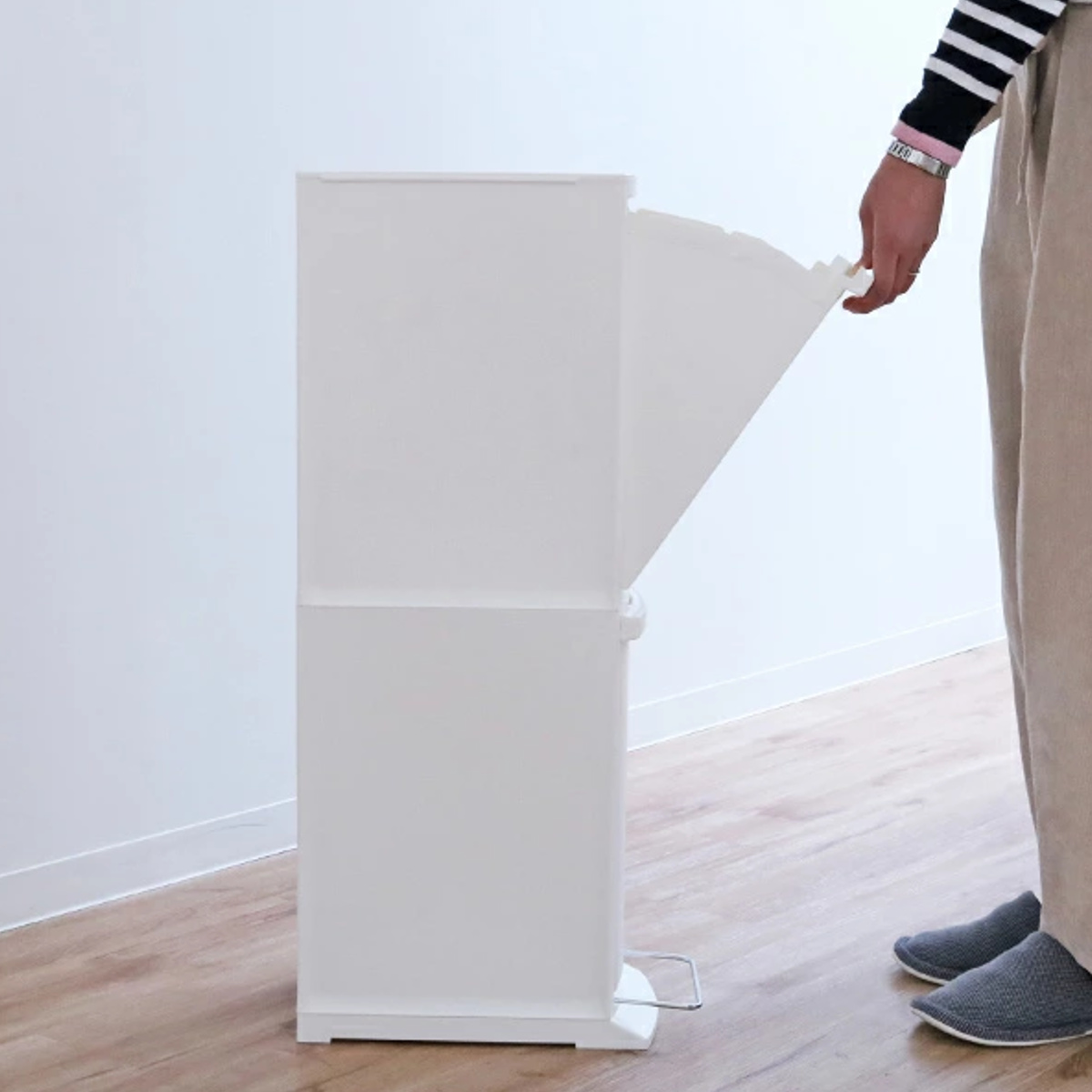 キッチンやリビングのわずかな隙間にも収まる、幅21cmの縦型スリムなゴミ箱です。各段10Lで資源ゴミの分別はもちろん、リサイクル用のトレーや牛乳パックの一時置きとしても便利です。