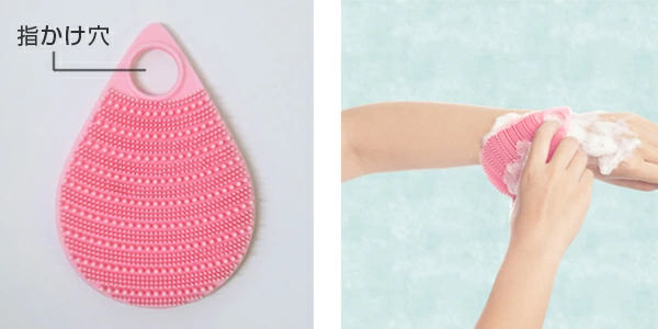 適度な刺激が欲しい時は表のポイントブラシ、優しく洗いたい時には裏のソフトな細ブラシと、リバーシブルでブラシのタイプを選べます。