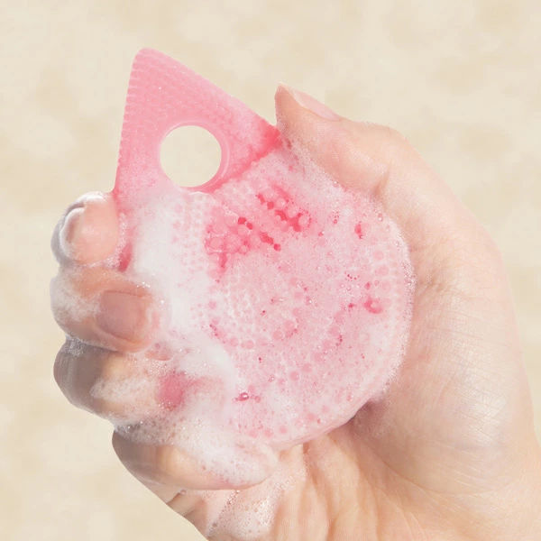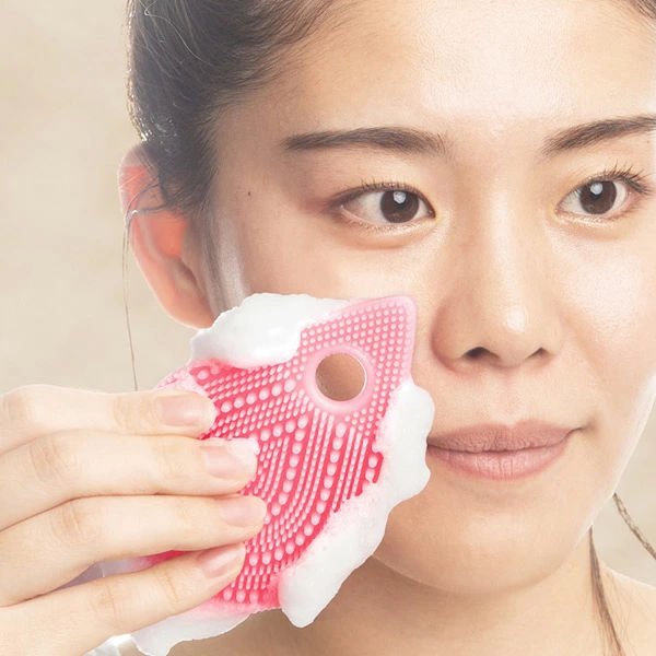 石鹸や洗顔料を付け、手でもみ込むように泡立てて使います。シリコンのやわらかブラシで泡立ちがよく、ふわふわの泡でマッサージしながら小鼻や毛穴の汚れもスッキリ洗えます。