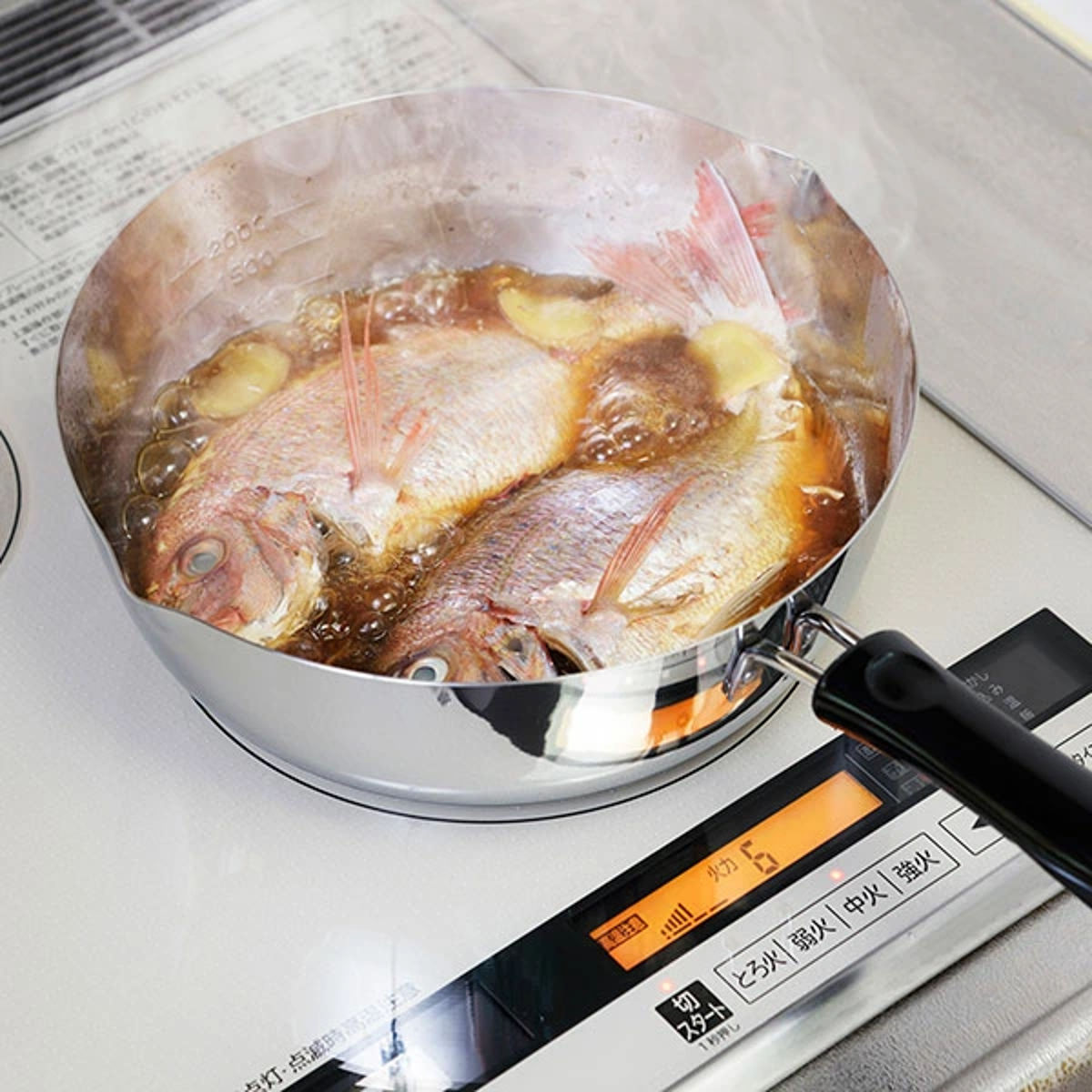 ガス火はもちろん、200V電磁調理器にも対応しています。