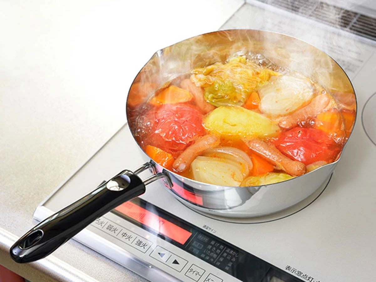 ●丈夫なステンレス製で、ガス火・IH調理器(200v)両方に対応しています。
