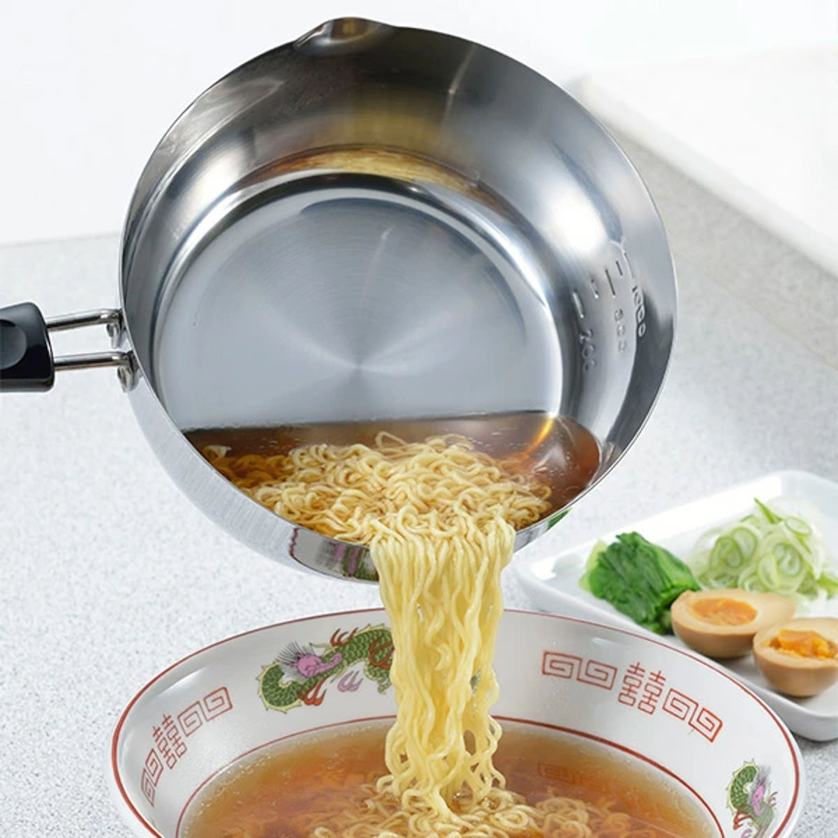 磨き職人がピカピカに仕上げた、目盛り付きゆきひら鍋
