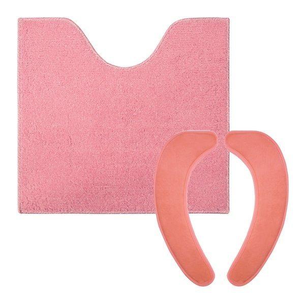 トイレマット 便座カバー トイレ2点セット ツリーピース プレーン マット 便座シート ( トイレ マット セット トイレセット 吸着シート 吸着便座シート 洗える 洗濯 滑り止め 55×60 トイレ用品 トイレタリー ) 【 ピンク 】