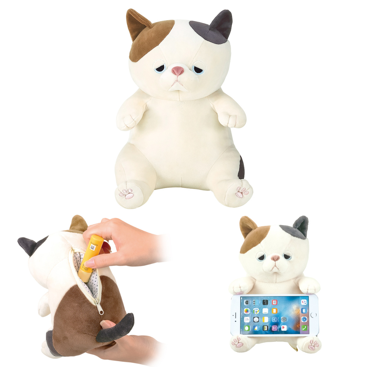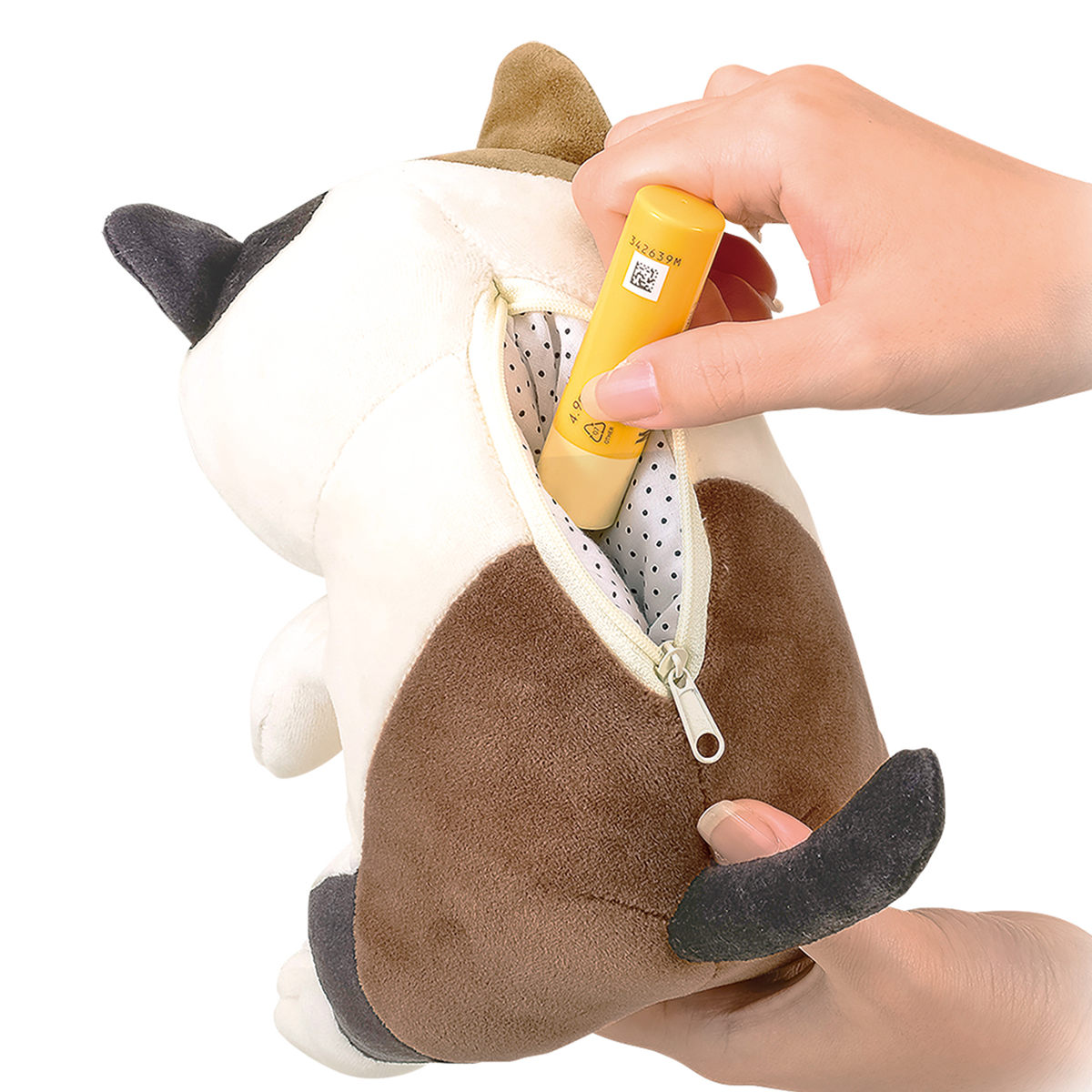 キョトンとした座り姿が愛らしい、「プレミアムねむねむアニマルズ」抱き枕Sサイズです。ふにゃっと力が抜けてリラックスしている様子がかわいく、見ているだけで癒されます。また、Sサイズは背面がファスナーになっており、小物を入れてポーチとしても使用できます。