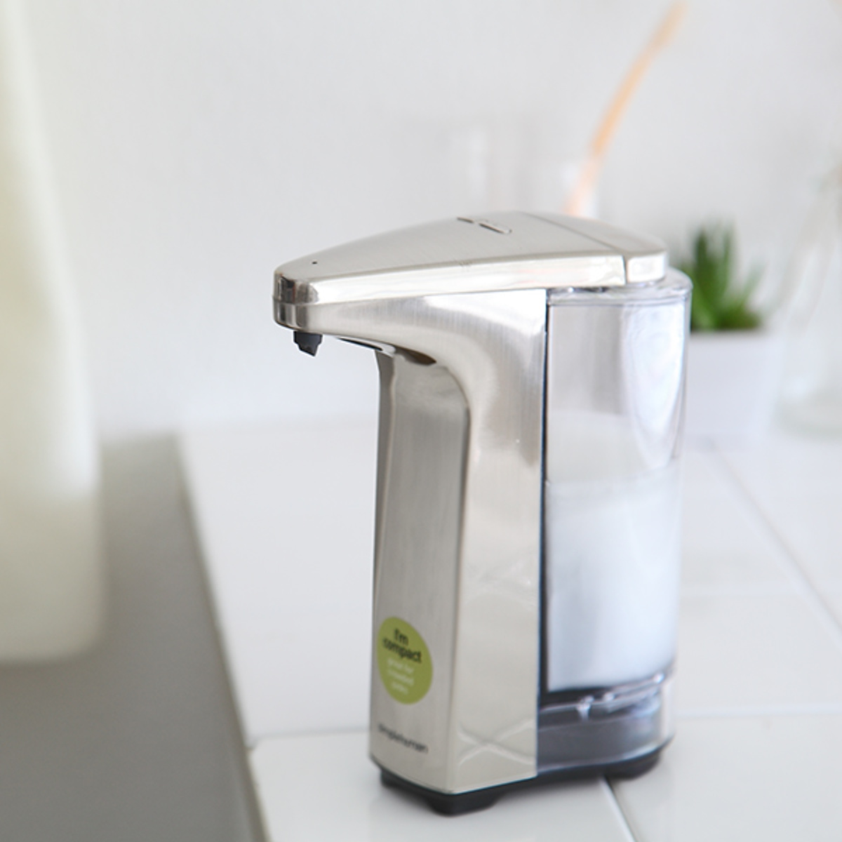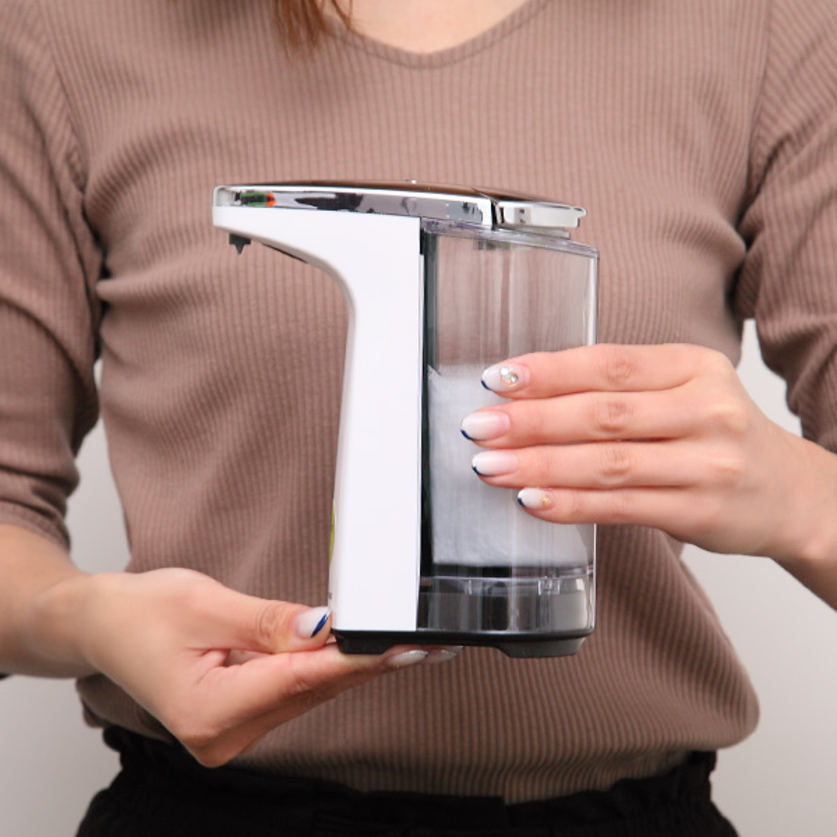 手をかざすだけで適量のソープを出してくれる、センサー式オートディスペンサーです。汚れた手で本体やノズルを触ることがなく汚れや指紋が付きません。お手入れ不要で水周りの衛生面をキープし、暮らしをより快適に。