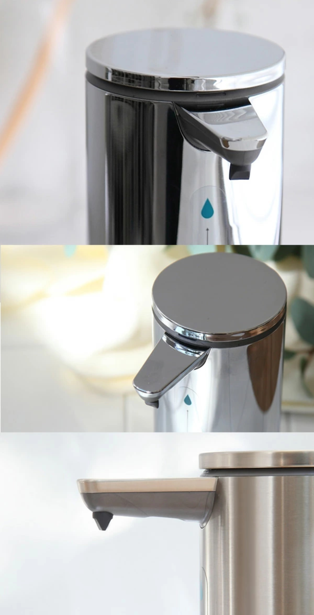 ノズル下の滴マーク1つのポイントに手をかざすと少なく、さらに下の滴マーク3つのポイントにかざすと多く出ます。