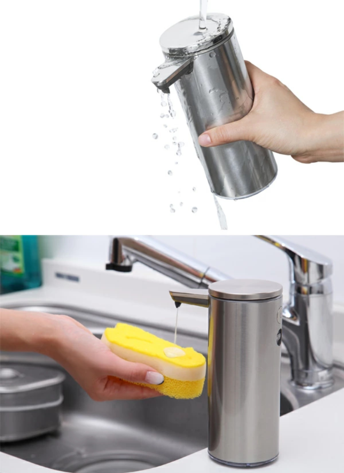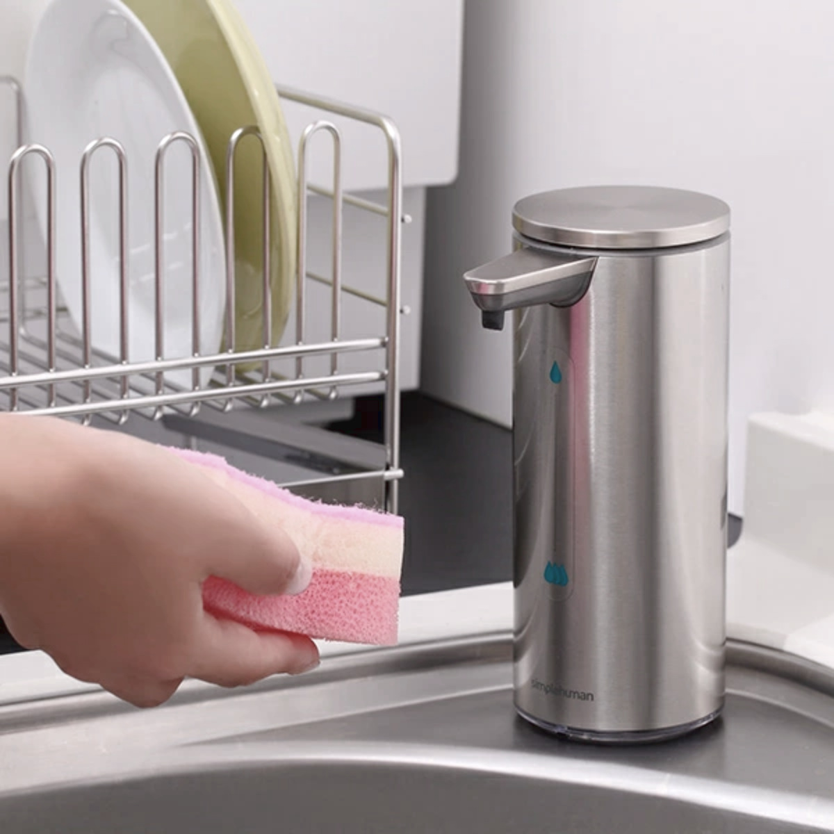 水に濡れてもOKなので、洗面所やキッチンで大活躍します。食器用洗剤を入れれば、スポンジをかざすだけで適量分だけ出してくれるので、出しすぎも防げて便利です。また丸洗いできるのも嬉しいポイント、お手入れ簡単です。