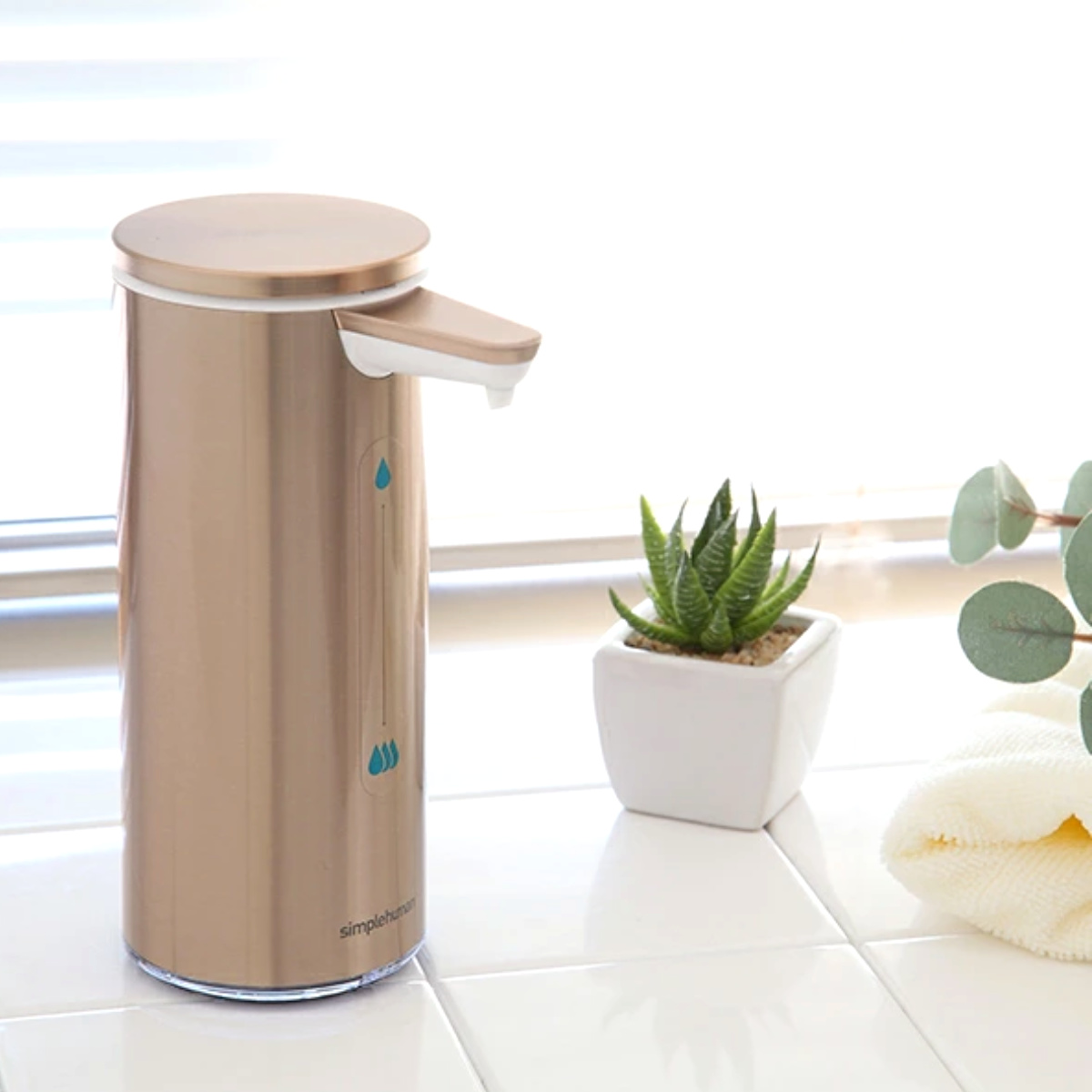 ディスペンサー 充電式センサーポンプ simplehuman シンプルヒューマン 自動 ( オートディスペンサー ディスペンサーボトル ソープディスペンサー ソープボトル ハンドソープボトル 防水 ハンドソープ 食器用洗剤 ボトル ) 【ローズゴールド】