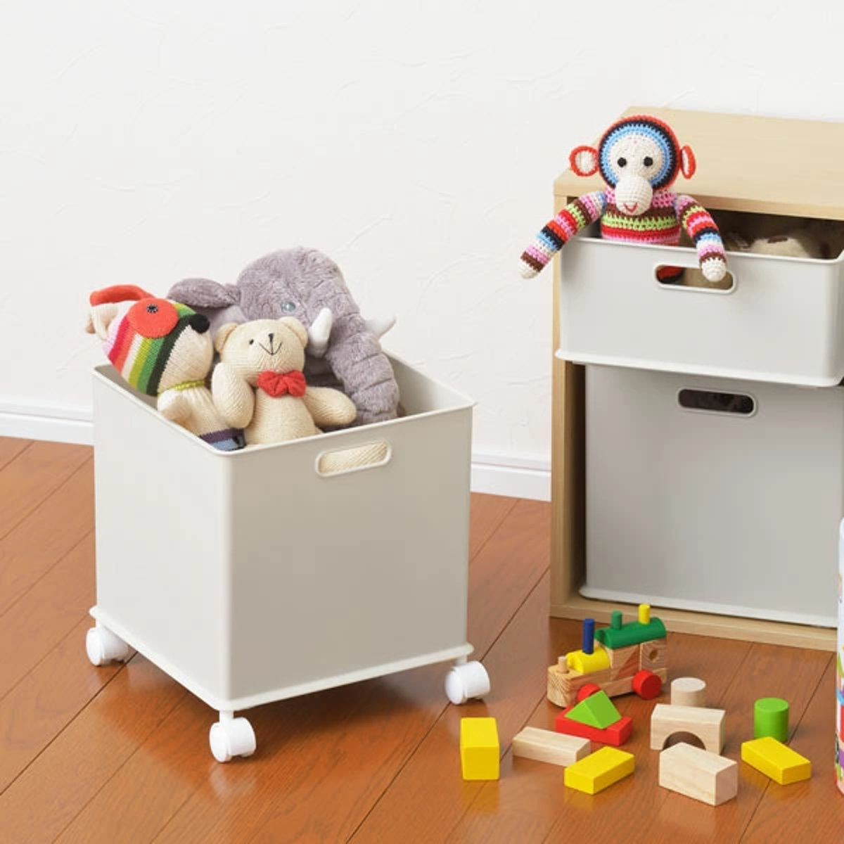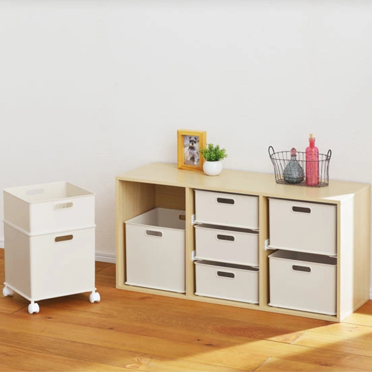 別売のキャスターを取り付けることができ、お掃除の際の移動もラクラクです。また、別サイズのインボックスやフタと組み合わせてもお使いいただけます。