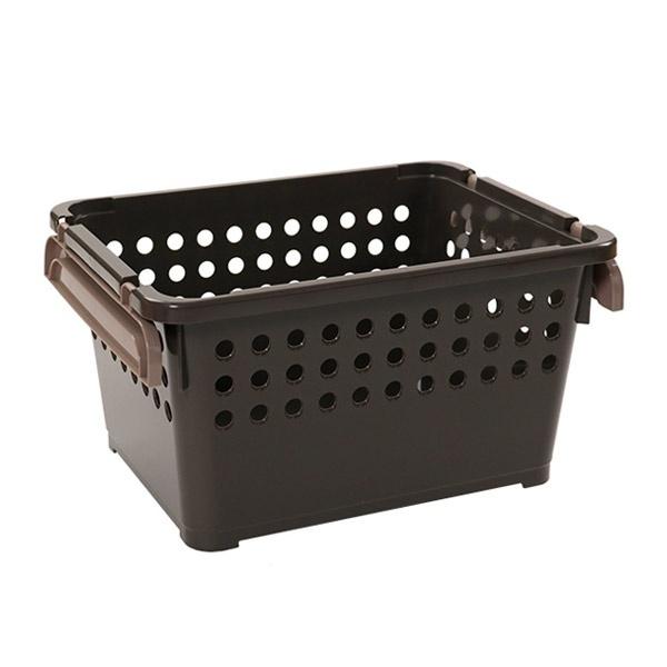 バスケット スタッキングバスケット 浅型 ( スタッキング 収納ケース 収納ボックス 籠 カゴ クローゼット 収納ト 衣類 おもちゃ箱 プラスチック おもちゃ 玩具 収納用品 ぬいぐるみ 重ねる 重なる ) 【 ナチュラルブラウン 】