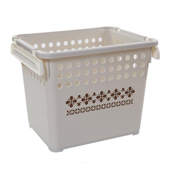 バスケット スタッキングバスケット 深型 柄付 ( スタッキング 収納ケース 収納ボックス 籠 カゴ クローゼット 収納ト 衣類 おもちゃ箱 プラスチック おもちゃ 玩具 収納用品 ぬいぐるみ 重ねる 重なる ) 【 サンドベージュ 】