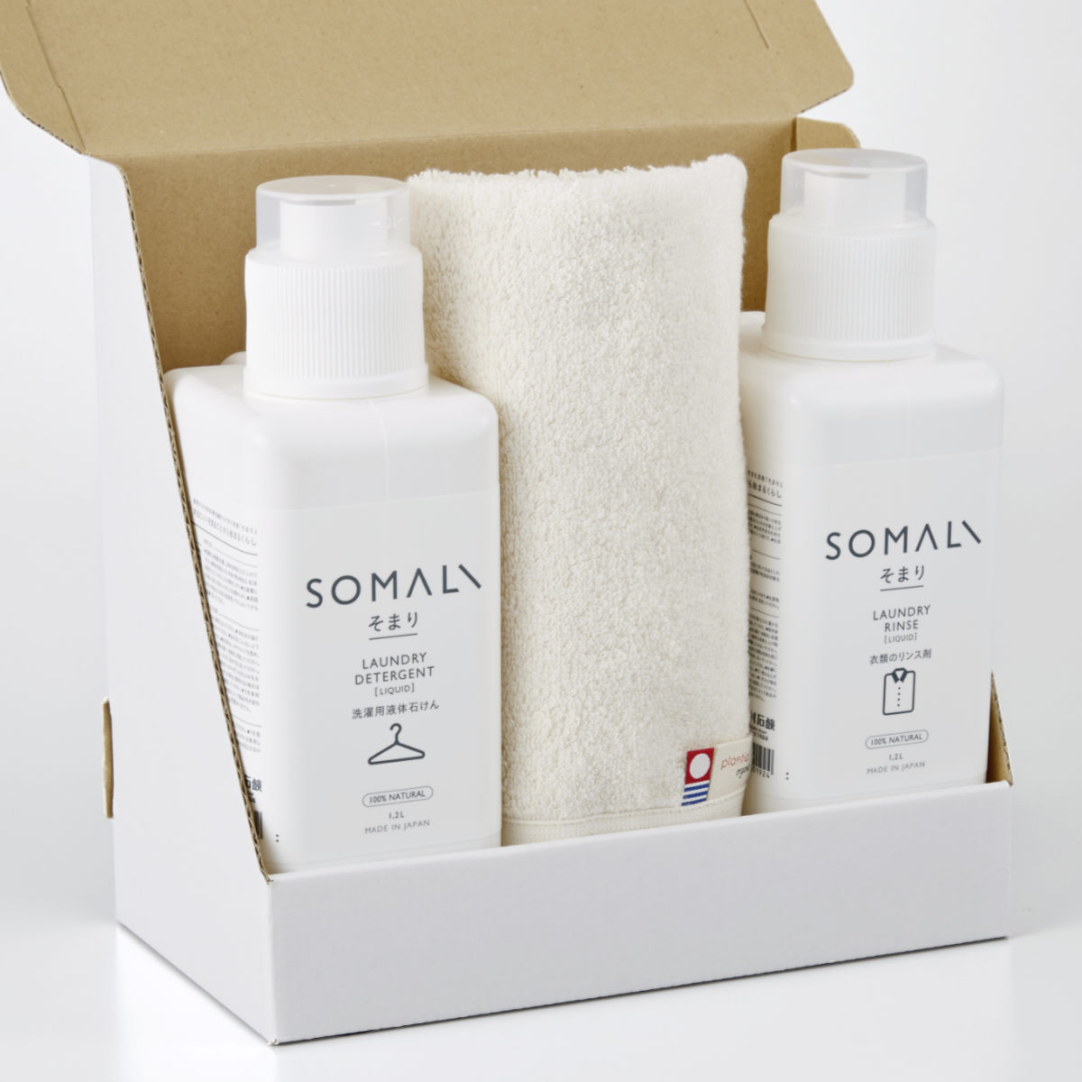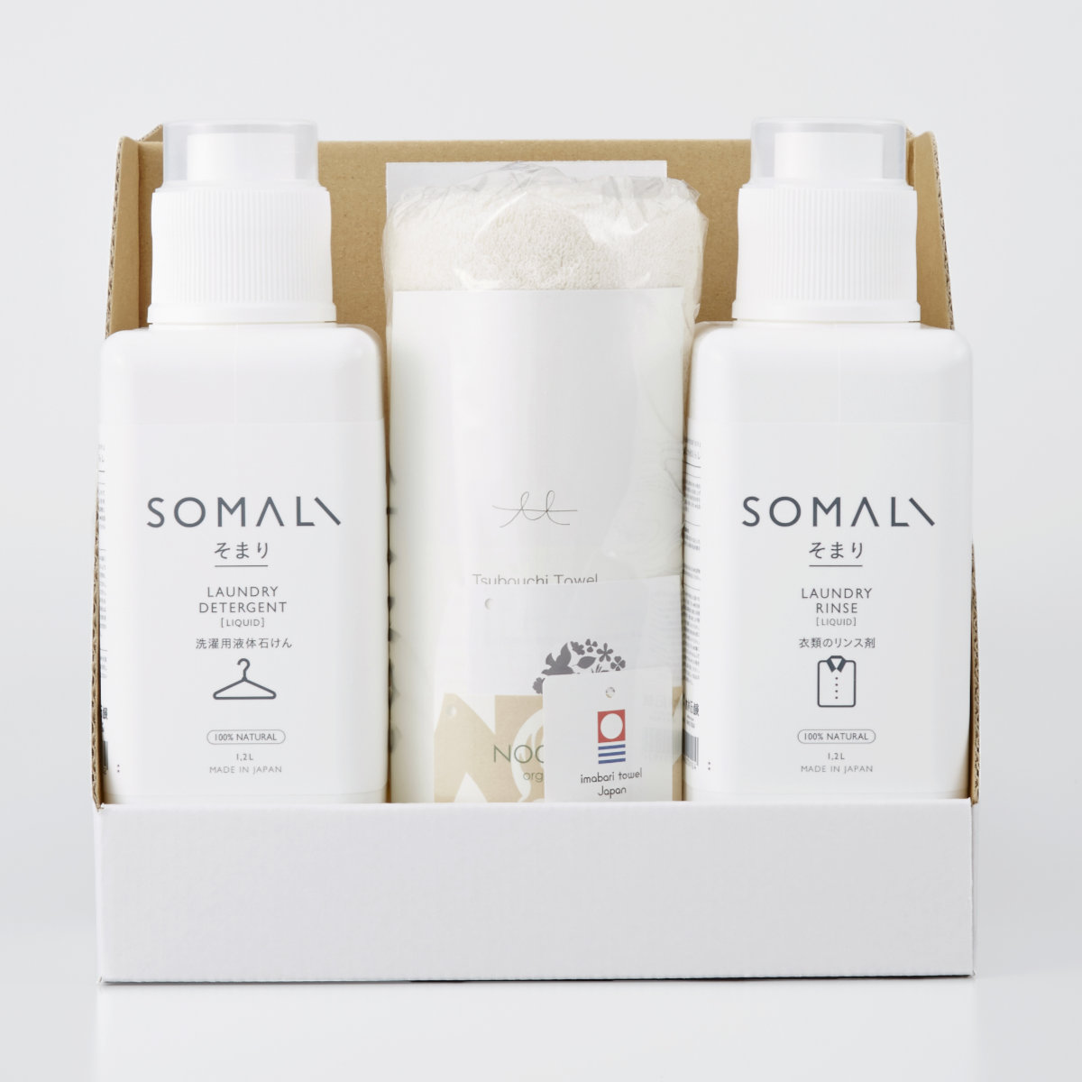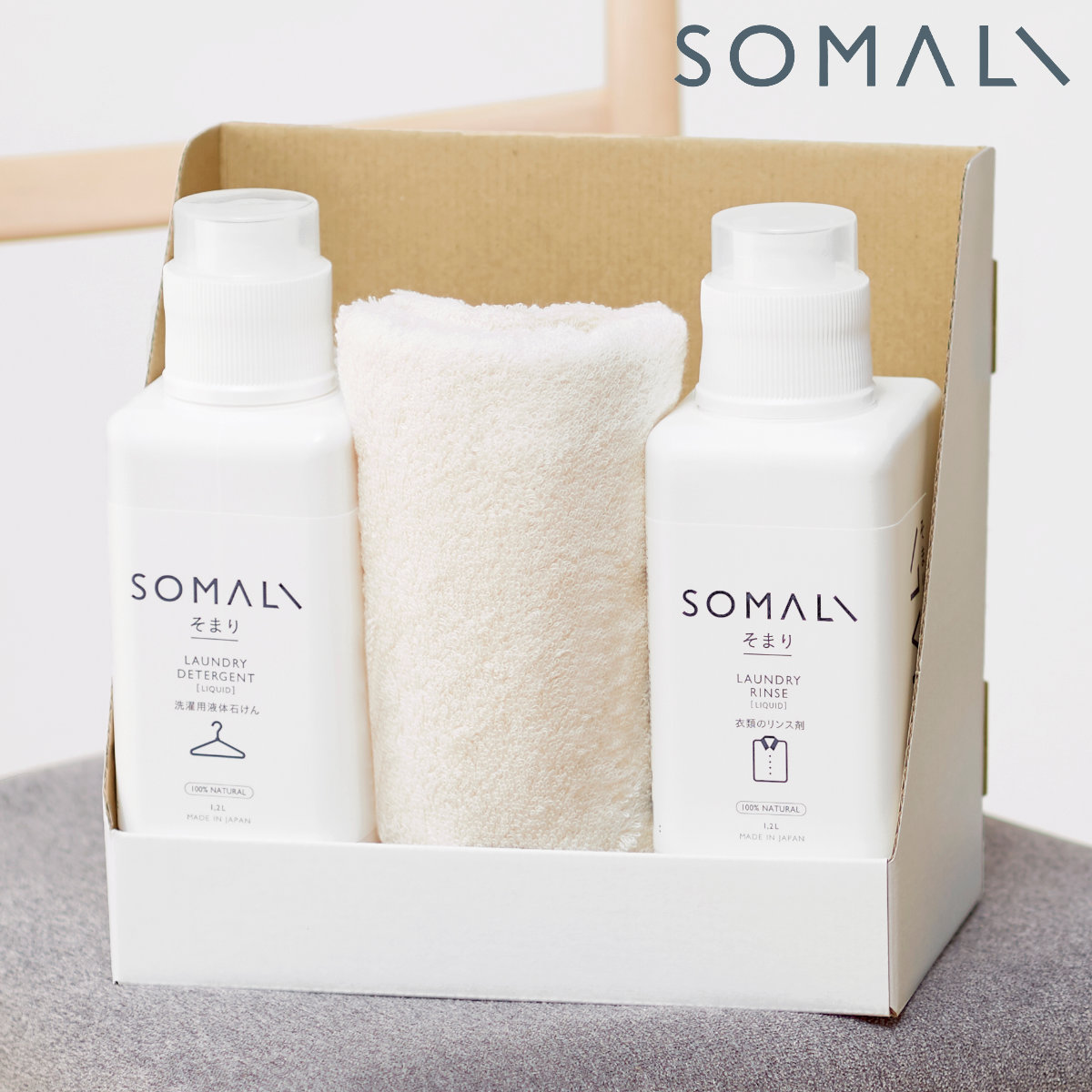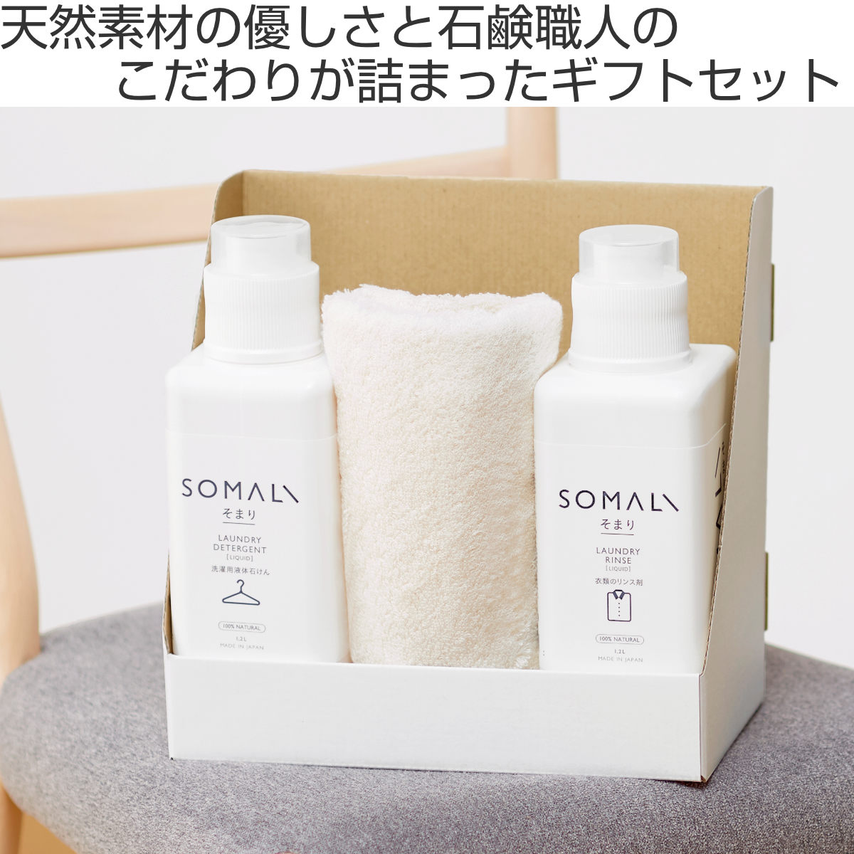 洗濯ギフト SOMALI ギフトC 衣類用液体石けん1200ml リンス剤1200ml フェイスタオル ( そまり ギフトセット 洗濯用洗剤 リンス剤 タオル 無添加 日本製 プレゼント 液体洗剤 石けん 衣類用 オーガニック 敏感肌 赤ちゃん 洗濯用品 )