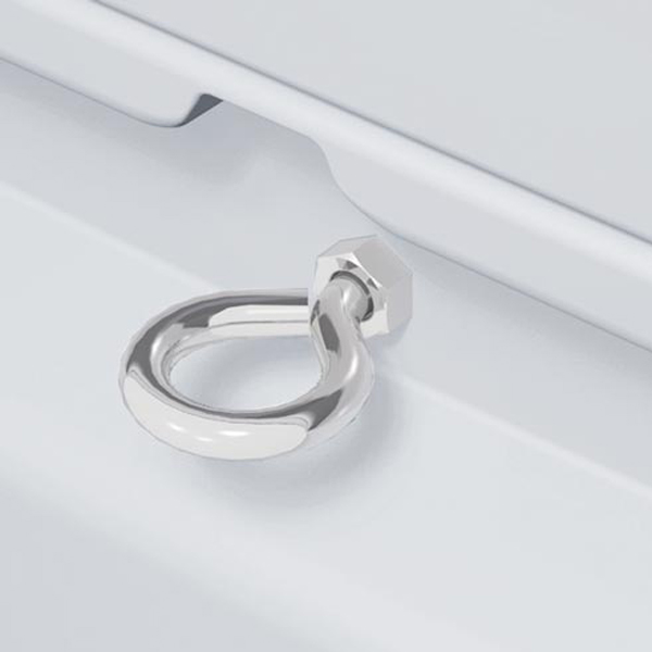 | 排水口付きで衛生的 内部の水洗いが簡単に出来るように排水口が付いています。また、ゴミ汚水を漏らさないように底部に排水栓が付いています。 | 転倒防止用ボルト付き 背面に強風対策の転倒防止用ボルトが付いているので、壁などに鎖を引っ掛けることができます。 |