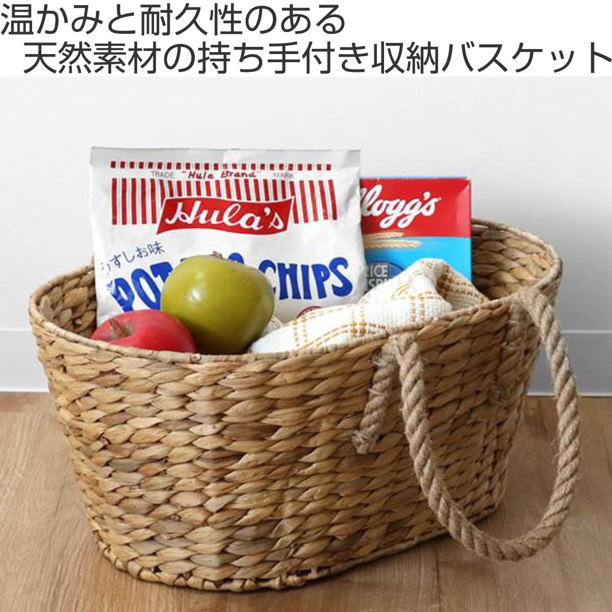 収納 バスケット ウォーターヒヤシンス 楕円形 持ち手付き 幅45×奥行30×高さ20cm ( ボックス カゴ 籠 天然素材 収納ケース オーバル かご 荷物入れ 衣類収納 おもちゃ おもちゃ入れ ペット お菓子 ストック )