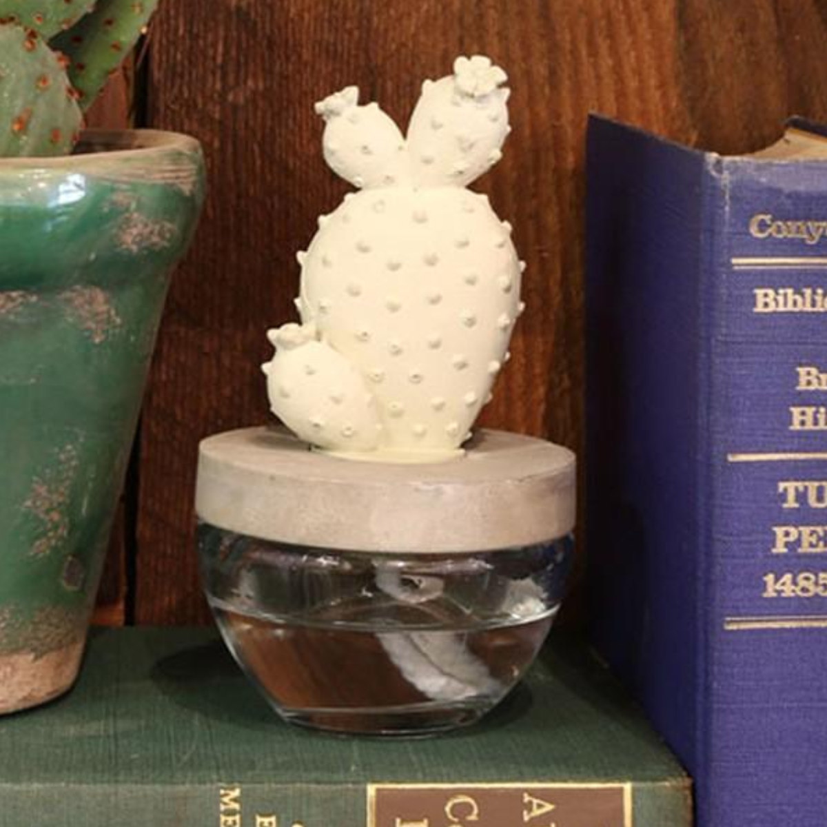 ガラスの中のオイルを吸い上げ、石膏でできた多肉植物から香りを拡散します。