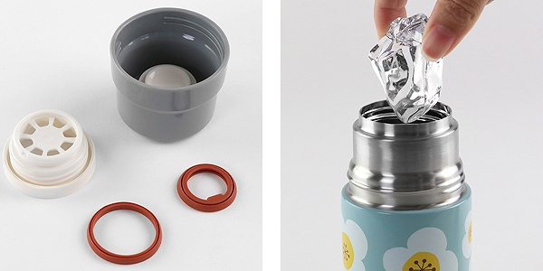 | お手入れ簡単 栓パッキンにはガイドが付いているので取り外ししやすくお手入れが簡単です。 | 広口タイプ 広口タイプの口径で氷が入れやすく便利です。中も洗いやすく衛生的に保てます。 |