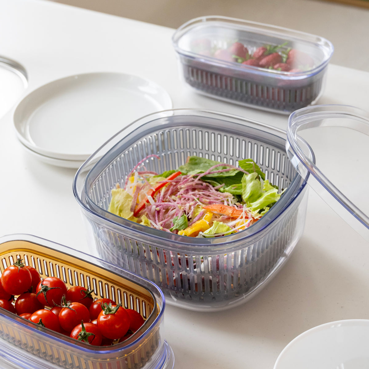 関連キーワード:プラスチック製 透明容器 長期保存 鮮度維持 野菜水切り キッチン用品 キッチン小物 キッチン雑貨 キッチングッズ キッチン便利グッズ おすすめ オススメ 便利 役立つ 透明 クリア 緑 白 グレー ブラック キッチン 便利グッズ 生活 おしゃれ 中が見える 正方形