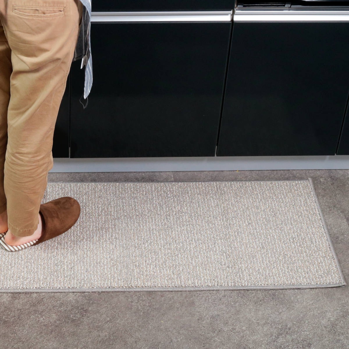 薄手にもかかわらず、ループ形状の生地なので弾力のある気持ちの良い踏み心地です。裏面には滑り止め加工が施してあり、ズレにくいので、掃除機掛けもスムーズです。また、裏の滑り止めも長持ちするタイプのものを使用しています。