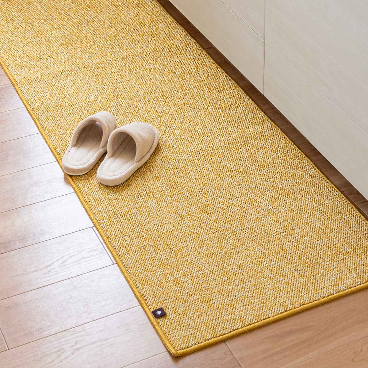 キッチンマット 45×240cm PLYS ( キッチン マット 240cm キッチンラグ カーペット ラグ 台所マット 長方形 インテリアマット 洗える 滑り止め おしゃれ ウォッシャブル オールシーズン ) 【イエロー】