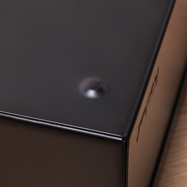 表面仕上げは「カチオン塗装」によるマットブラック仕上げとなっています。耐久性のある塗装で傷を防ぎ、高級感を演出します。