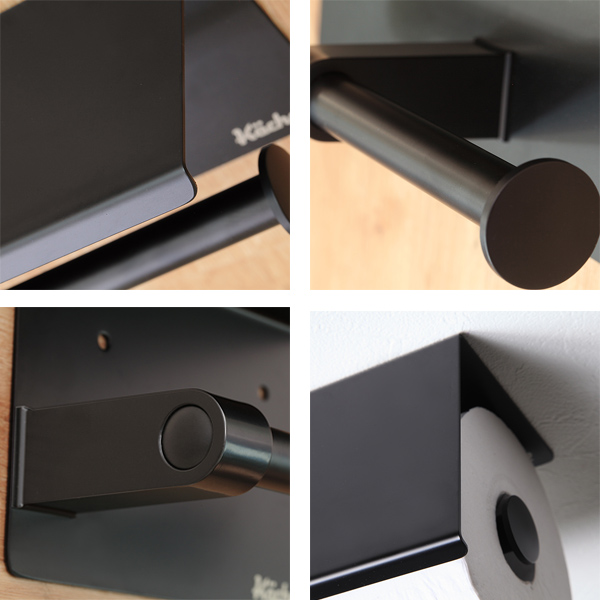 トイレットペーパーホルダー Kochel ケッヘル ステンレス スマホテーブル シングル バータイプ ブラック ( トイレットペーパー ホルダー 棚 ペーパーホルダー 取り付け 壁面 壁 壁付け 棚付 黒 金属 トイレ スマホ )