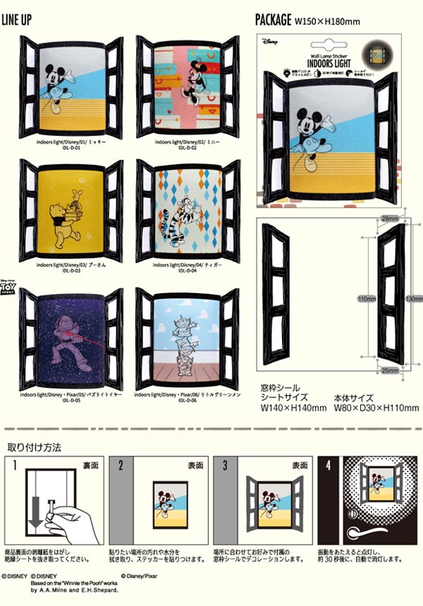 ウォールステッカー ウォールランプステッカー くまのプーさん ティガー INDOORS LIGHT ディズニー キャラクター ( 照明 ウォールライト 間接照明 キャラ センサー 音感 ライト 屋内 壁 階段 リビング 振動 インテリア Disney )