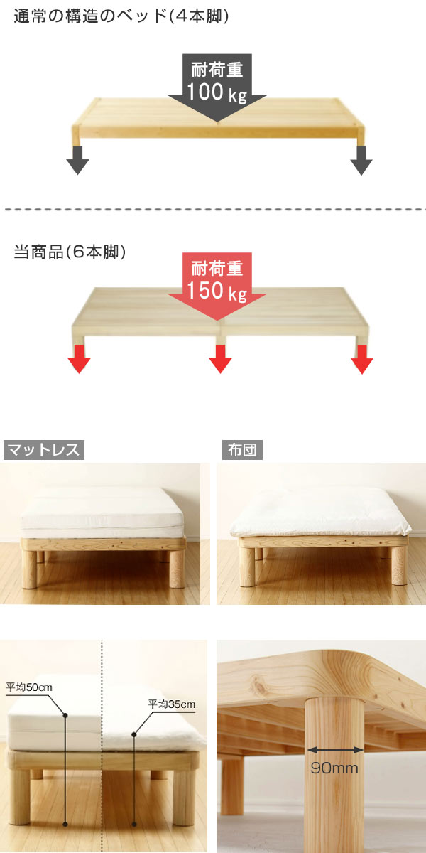 耐荷重150キロ、布団でもマットレスでも快適に使える