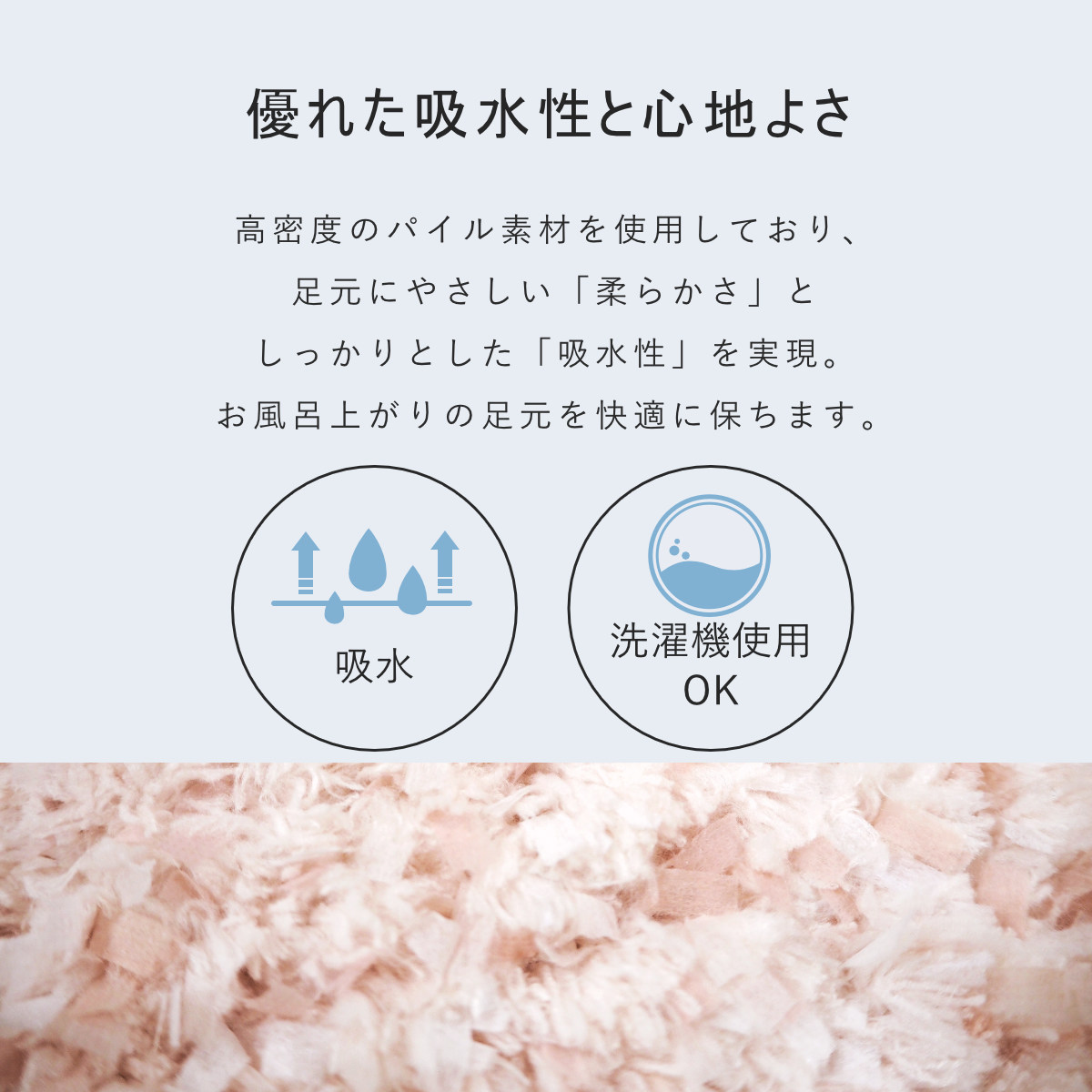 バスマットの裏面にはすべりにくい加工が施されているので、安心してお使いいただけます。