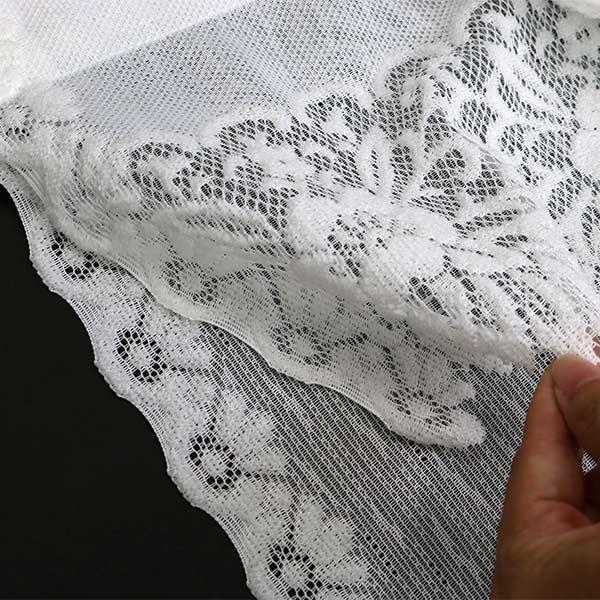 繊維の町、群馬県は桐生市の老舗レースメーカーに編んでもらった珍しいパイル編みレースを使用しており、程よいボリュームがあります。縫製も日本国内の職人さんに丁寧に縫製してもらっています。