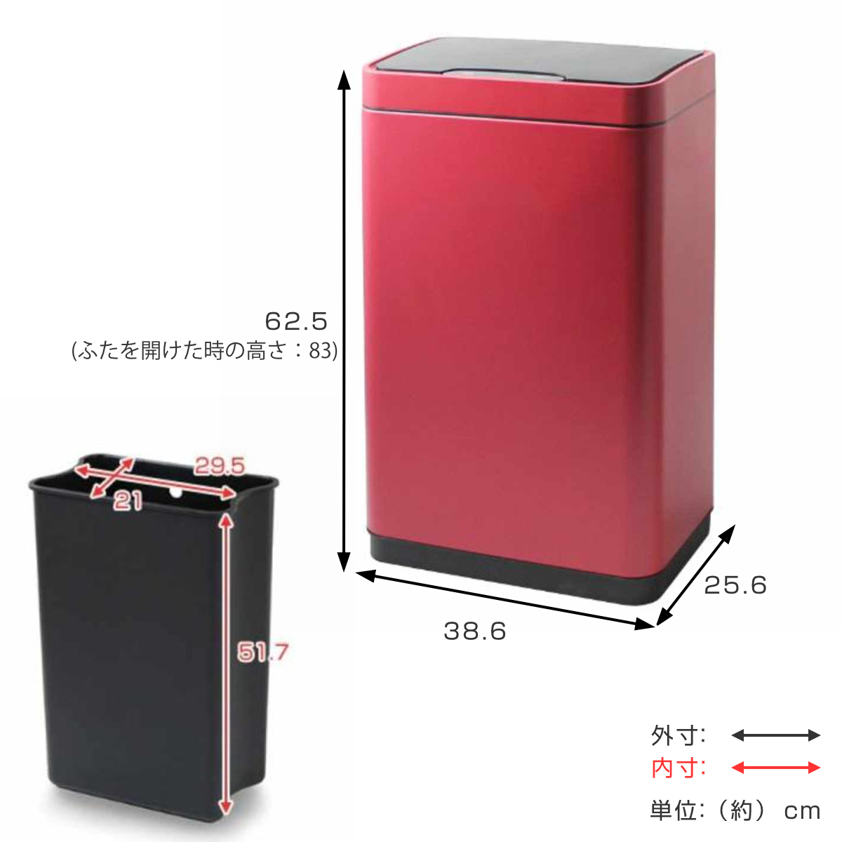 ゴミ箱 30L JAVA Vegas センサー 電池式 ( ごみ箱 30リットル ジャバ ベガス 奥行25.6 スリム ふた付き 自動開閉 自動 角型 レッド 袋 見えない 静音 ゆっくり閉まる フタ付き 蓋付き シンプル リビング コンパクト おしゃれ )