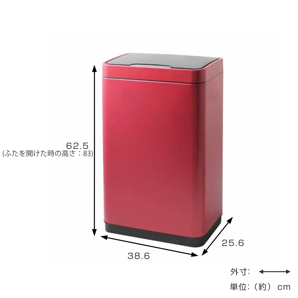 ゴミ箱 50L JAVA Vegas センサー 電池式 ( ごみ箱 50リットル 大容量 ジャバ ベガス 奥行25.6 スリム ふた付き 自動開閉 自動 角型 レッド 袋 見えない 静音 ゆっくり閉まる シンプル リビング コンパクト おしゃれ )