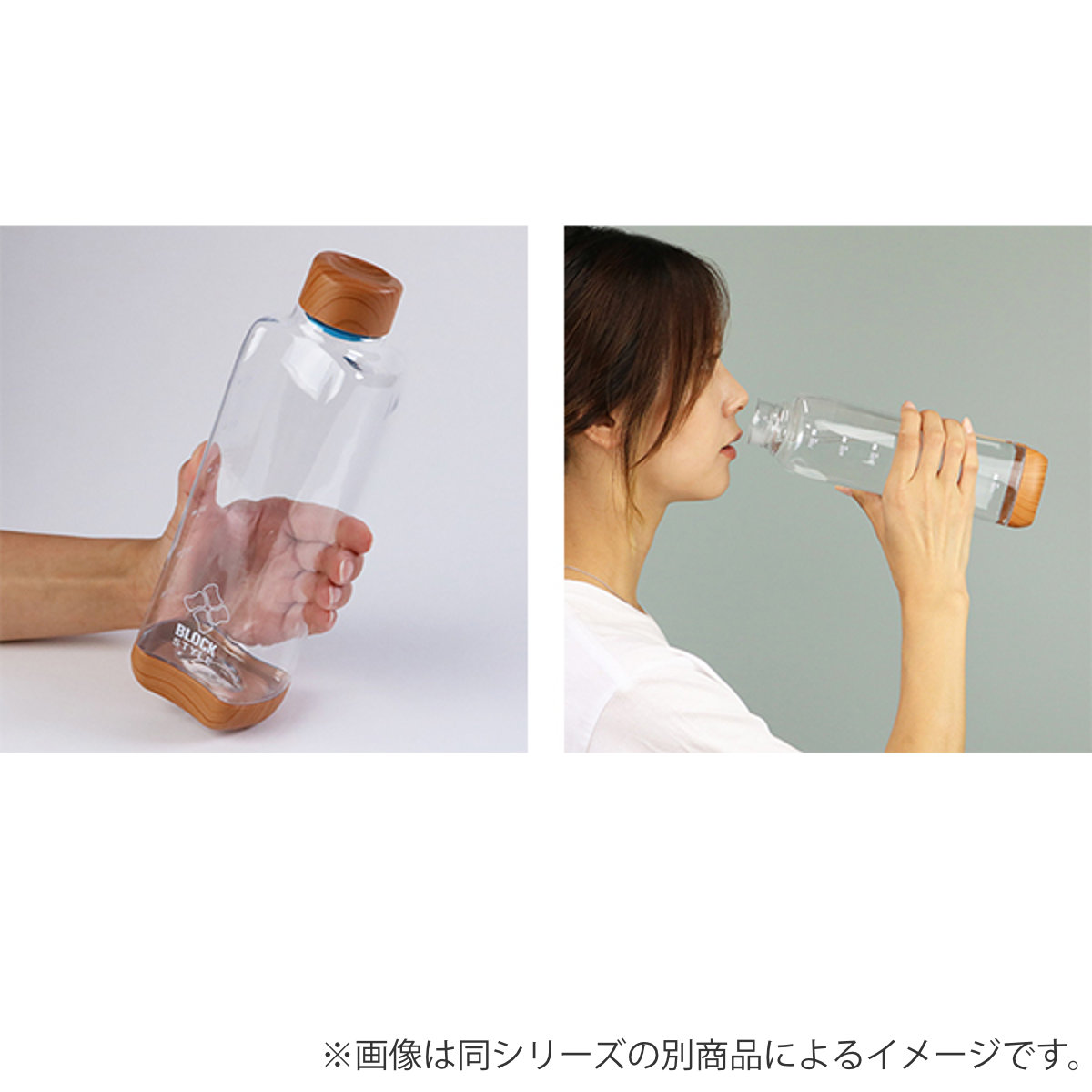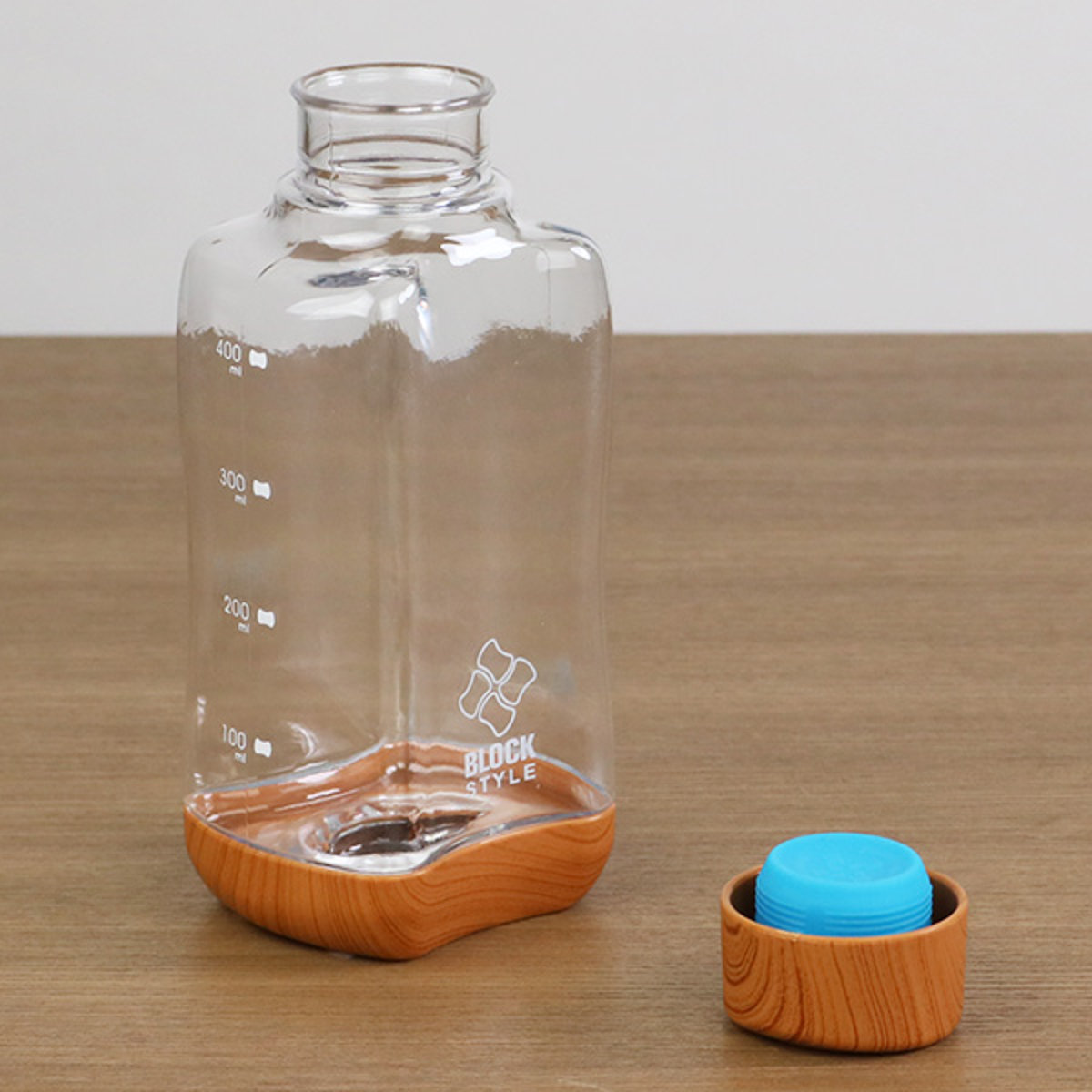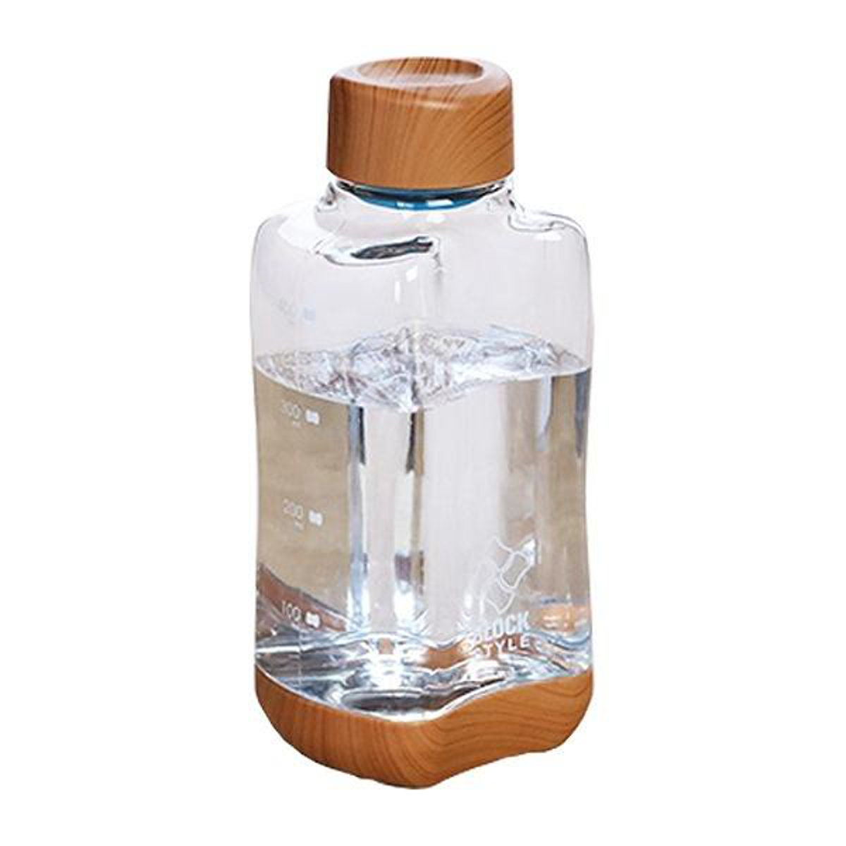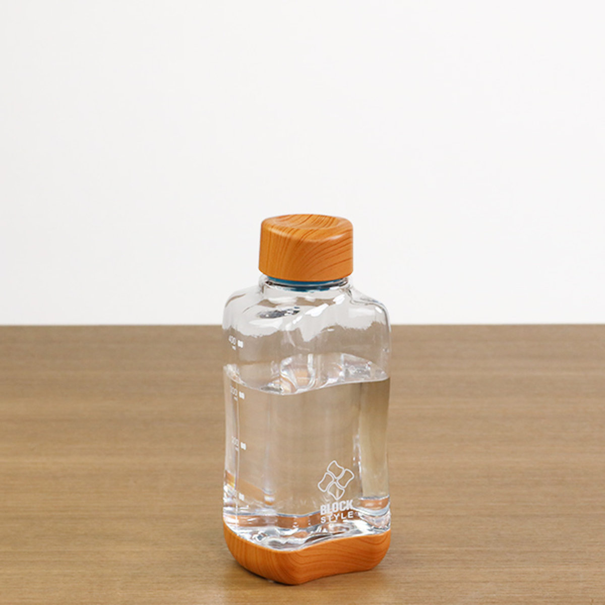 水筒 直飲み プラスチック ブロックスタイル アクアボトル 500ml ウッド調 ( 目盛り付き プラスチックボトル ボトル クリアボトル ダイレクトボトル 常温 軽量 軽い 500 木目 積み重ね 持ちやすい おしゃれ シンプル )