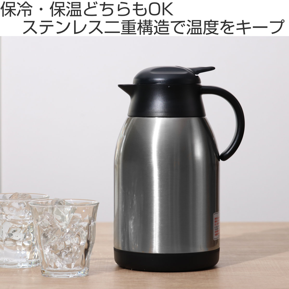 卓上ポット 2L 保温 保冷 イーシス テーブルポット ステンレス製 ( ステンレスポット 保温ポット 保冷ポット 押すだけ 真空二重構造 お湯割り 魔法瓶 )