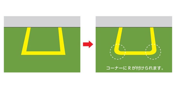 ●ラインテープでの区画整理等に直角コーナーの交差部分をスムーズに接続できます。