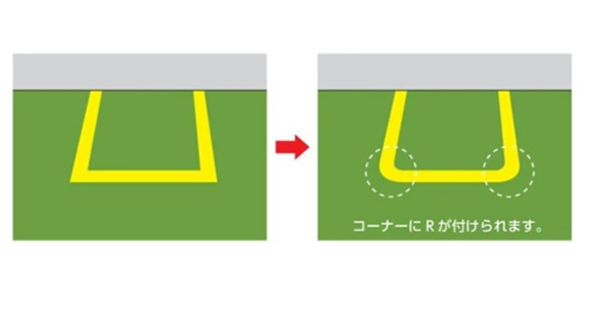 ●ラインテープでの区画整理等に直角コーナーの交差部分をスムーズに接続できます。