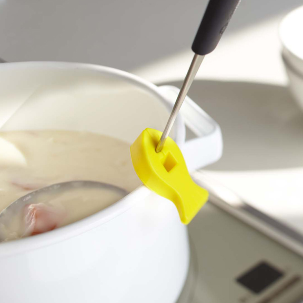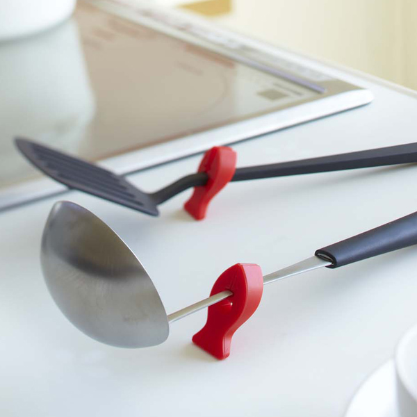 耐熱温度は200度なので、調理中のお鍋にサッと引っ掛けておくことができ、作業台が狭くならず、調理もスムーズ。熱に強く滑りにくいシリコン製です。