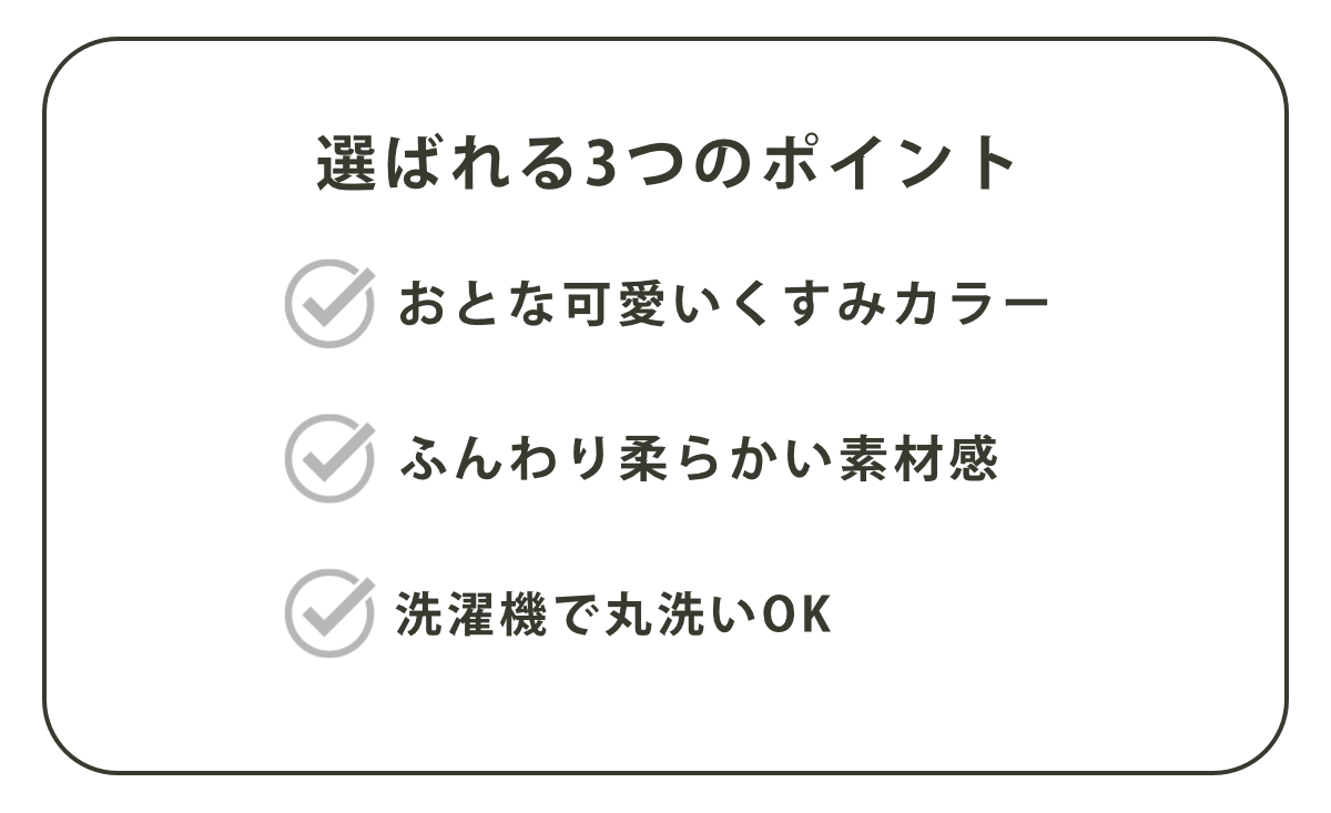 | 種類 | ピンク、ミント、クリーム、グレー |