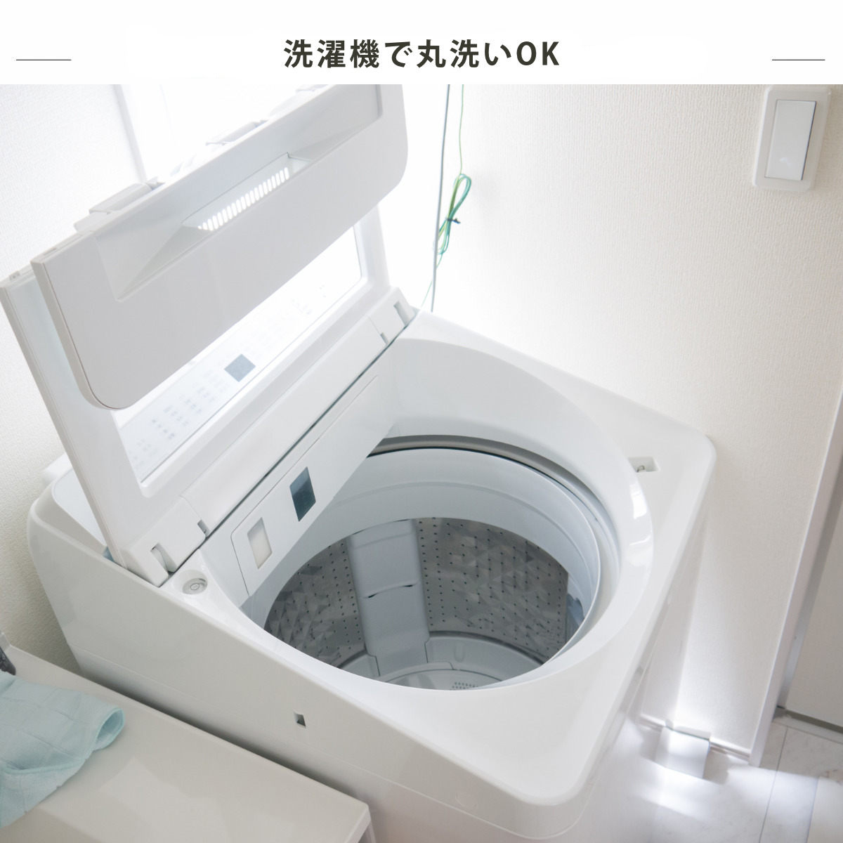 洗濯ネットに入れて洗濯機で丸洗いできます。汚れが気になったら気軽に洗えるので、いつでも清潔にお使いいただけます。