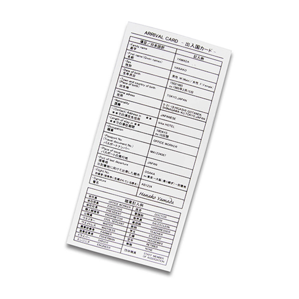 出入国カードの記入例付き