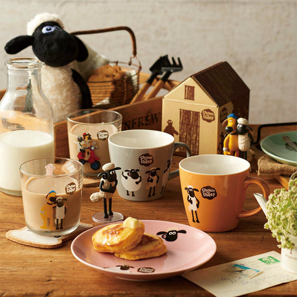 マグやグラス、プレートの絵柄は、主人公ショーンの他にも牧場の仲間の羊たちや牧場主も。お気に入りのキャラクターを探してゆっくりティータイムはいかがですか?