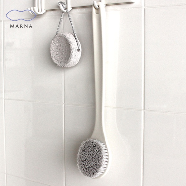 シャリ感が気持ちいいナイロンのシャリ感と凸凹模様でスッキリ爽快に洗い上がります。 | 見た目もおしゃれどんなバスルームにも馴染むシックな色合いで、乾きやすく衛生的です。 |